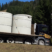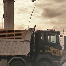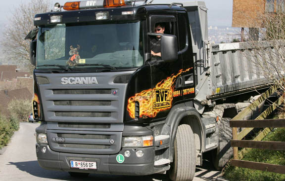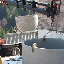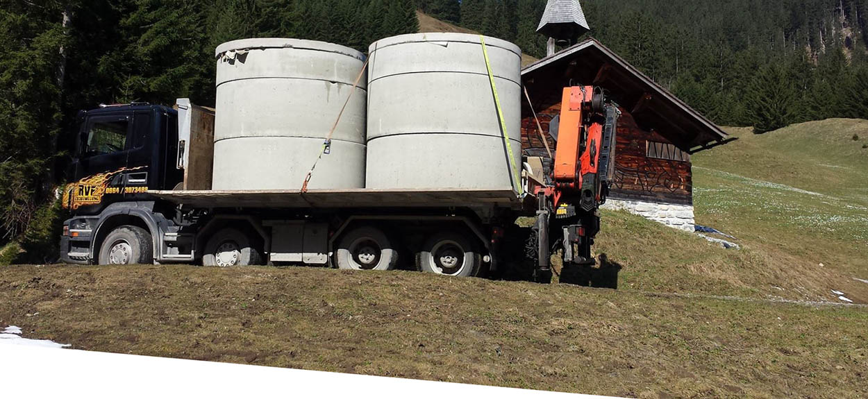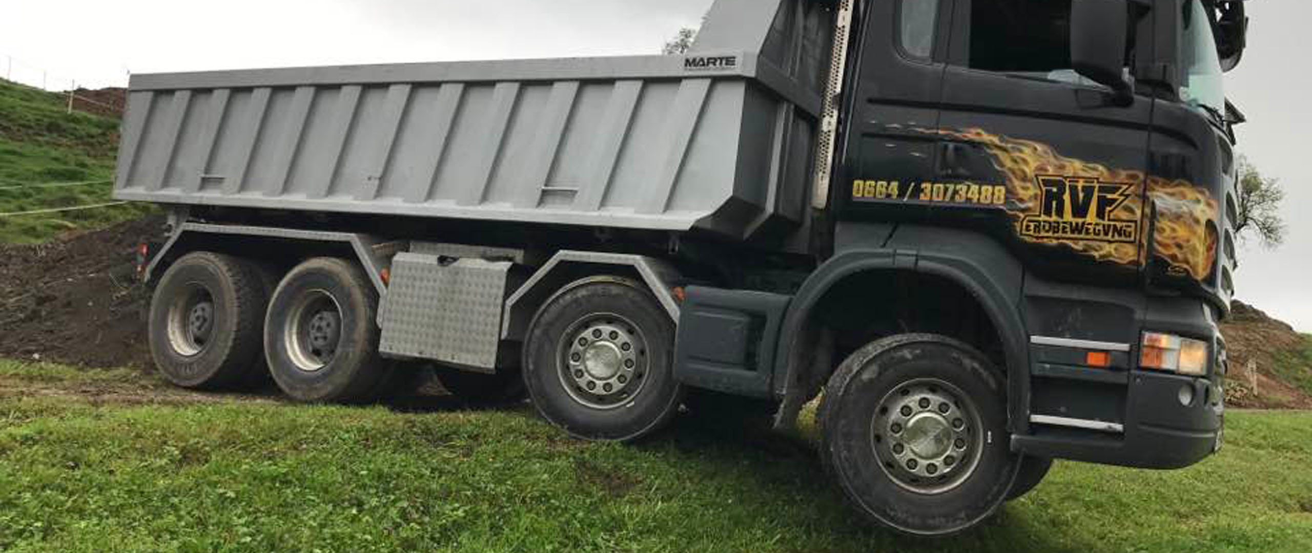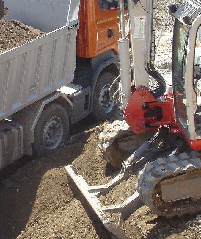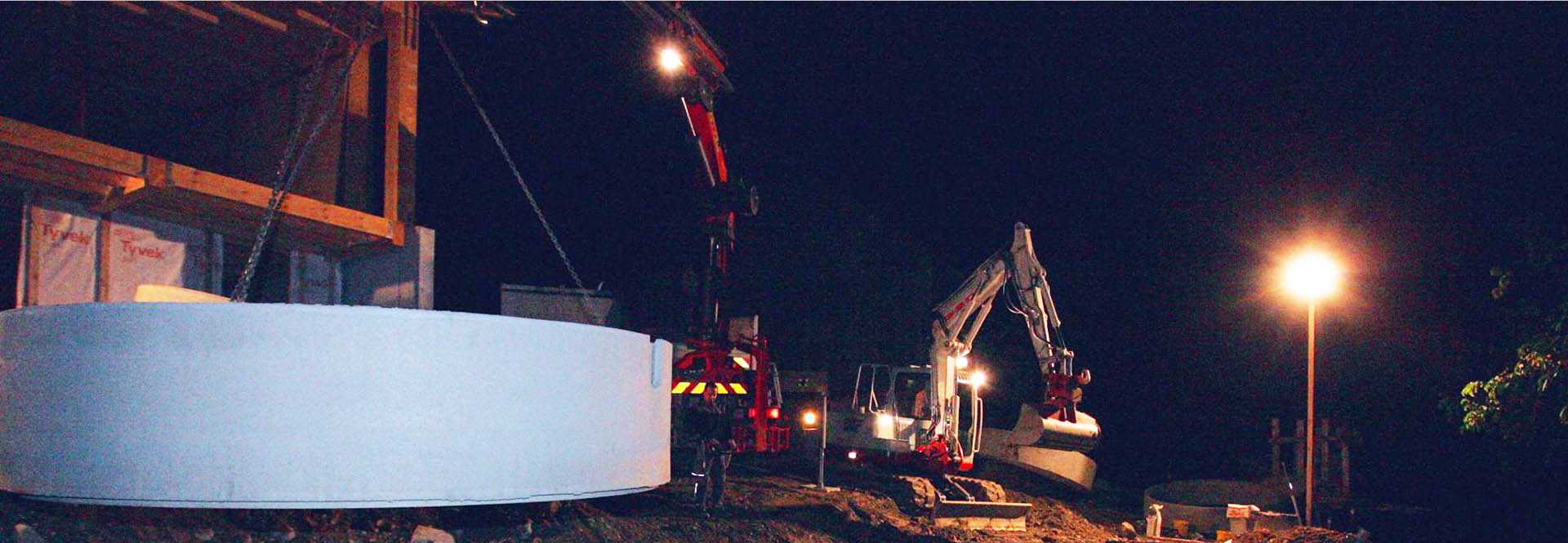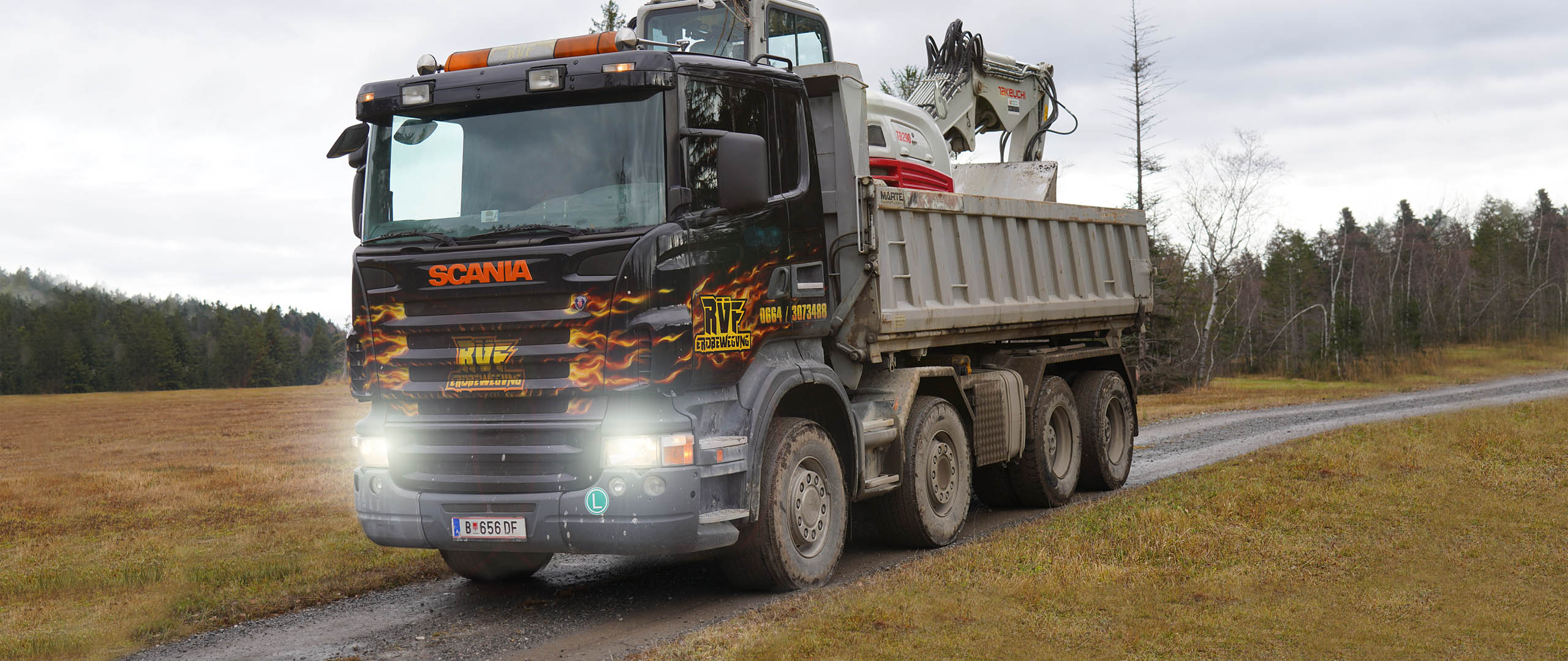 Rüf Erdbewegung. Wir lierfern, heben, bauen, gestalten und erschließen für Sie. Rasch, exakt, zuverlässig und speditiv. Bei Tag und Nacht.